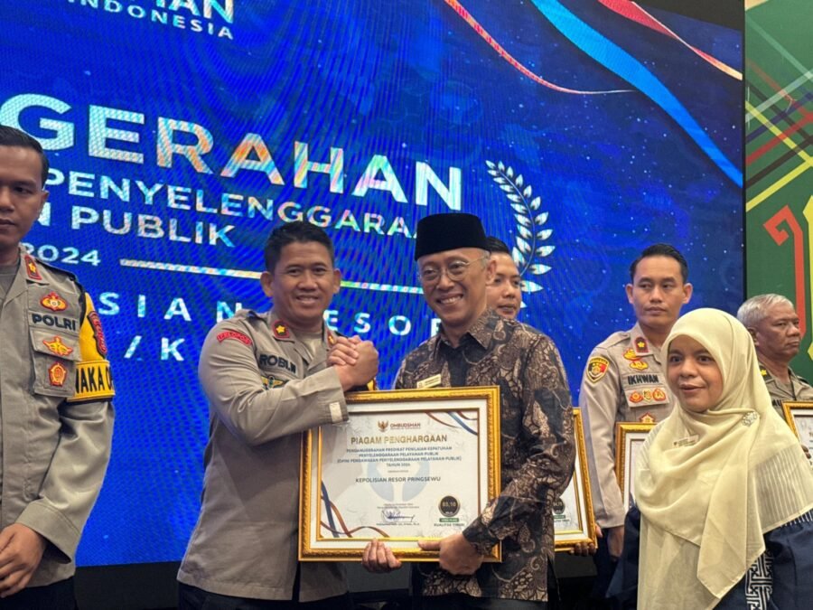 Pringsewu (Netizenku.com): Polres Pringsewu kembali menorehkan prestasi gemilang di tahun 2024 dengan menerima penghargaan atas Predikat Penilaian Kepatuhan Penyelenggaraan Pelayanan Publik dari Ombudsman Republik Indonesia. Piagam penghargaan ini diserahkan langsung oleh Ombudsman RI dalam acara yang digelar di Ballroom Hotel Emersia, Bandarlampung, pada Kamis (12/12/2024).
