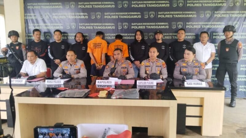 Tanggamus (Netizenku.com): Kedua tersangka berinisial AJ alias Ari (30) dan AM alias Aman (34), warga Dusun Way Pring B, Pekon Way Pring, Kecamatan Pugung. Penetapan tersangka disampaikan langsung Kapolres Tanggamus AKBP Rahmad Sujatmiko, S.I.K., M.H., saat konferensi pers di basement Satreskrim Polres Tanggamus, Kamis (18/12/2025).