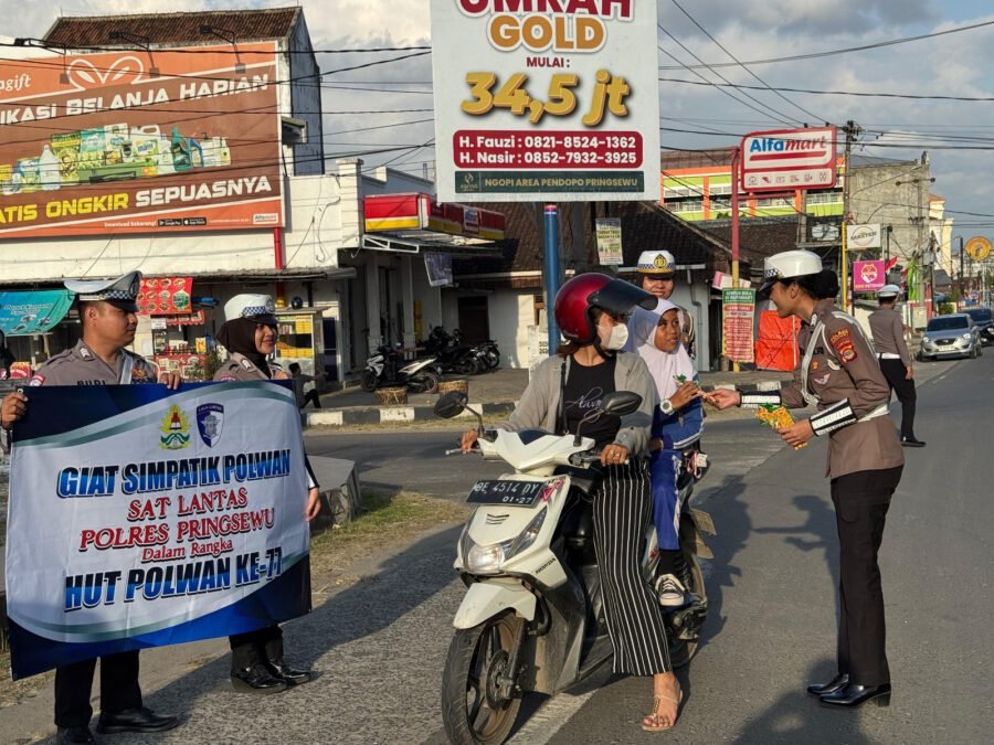 Pringsewu (Netizenku.com): Kegiatan ini dipimpin langsung oleh Kanit Turjawali Satlantas Polres Pringsewu, Ipda Silvi Purdiana, dan diikuti oleh jajaran Polwan Satlantas. Aksi simpatik tersebut digelar dalam rangka menyambut Hari Ulang Tahun (HUT) Polwan ke-77.