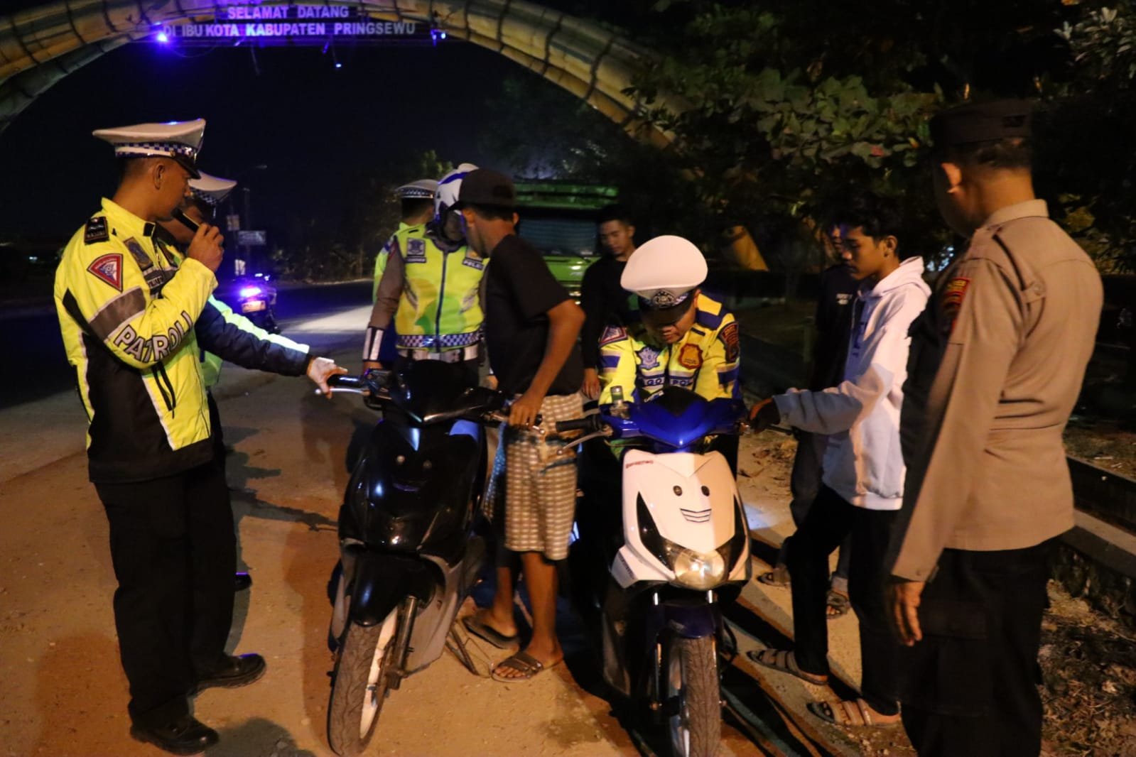 Pringsewu (Netizenku.com): Puluhan personel dari Polres Pringsewu dan Polsek jajaran diterjunkan pada Sabtu malam (26/8/2023), untuk mengamankan lokasi-lokasi rawan yang sering menjadi tempat tawuran dan balap liar.