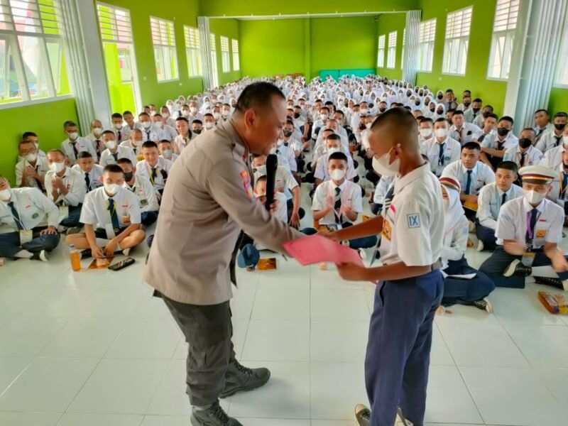 Pembekalan diberikan saat ratusan siswa baru menjalani masa pengenalan lingkungan sekolah (MPLS) di sekolah setempat dan dipimpin oleh Kaur Bin Ops Sat Binmas Ipda Eko Sujarwo.