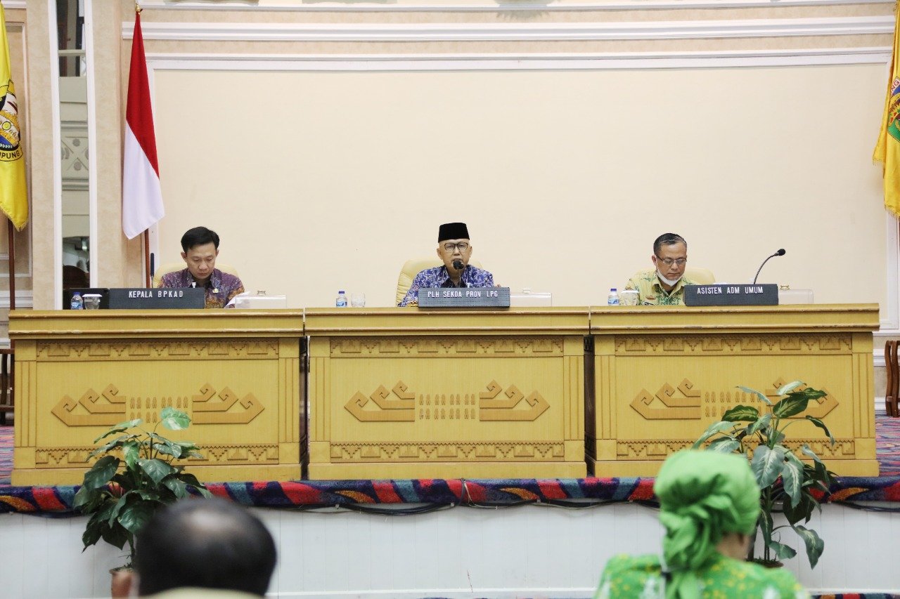 Plh. Sekretaris Daerah Provinsi Lampung Ir.Fredy S.M.,M.M memimpin rapat Percepatan dan Optimalisasi Pencapaian Target Kinerja Pendapatan dan Belanja Daerah atau Serapan Anggaran bersama dengan Seluruh Kepala OPD dan Pengelola Keuangan disetiap OPD Pemerintah Provinsi Lampung, di Balai Keratun, Jumat (29/07/2022).