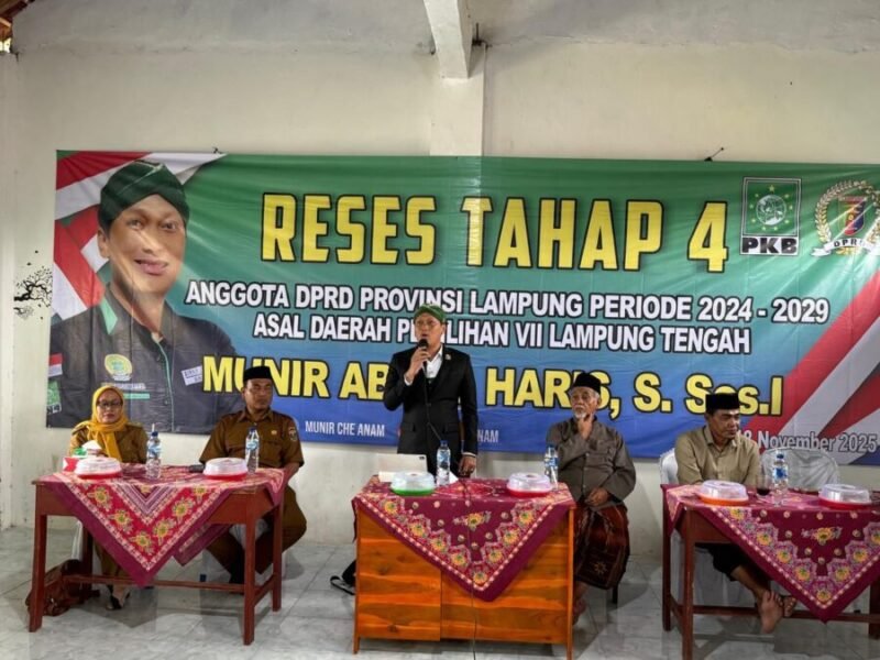 Anggota Komisi III DPRD Provinsi Lampung dari Fraksi Partai Kebangkitan Bangsa, Munir Abdul Haris, melaksanakan reses hari terakhir di titik ke-11 dan ke-12 dengan mengunjungi Rumbia dan Kota Gajah, Selasa (18/11/2025).