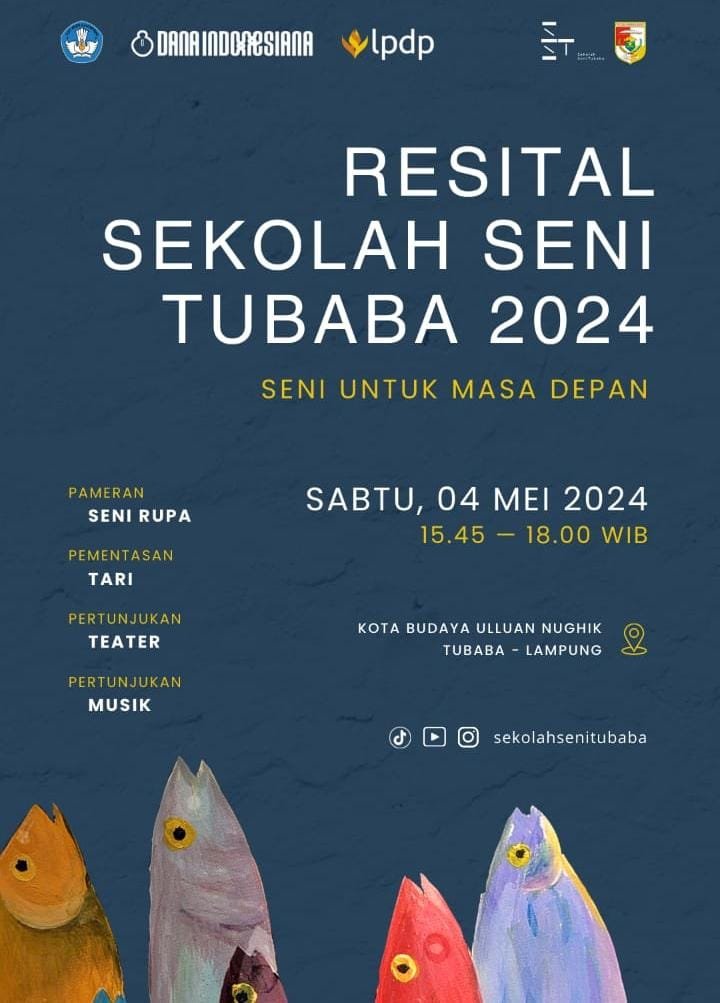 Tulangbawang Barat (Netizenku.com): Sekolah Seni Tubaba akan menggelar resital (pentas/pameran akhir) pada Sabtu, 4 Mei 2024 mendatang, dan dipusatkan di Uluan Nughik, Panaragan, Kecamatan Tulangbawang Tengah.