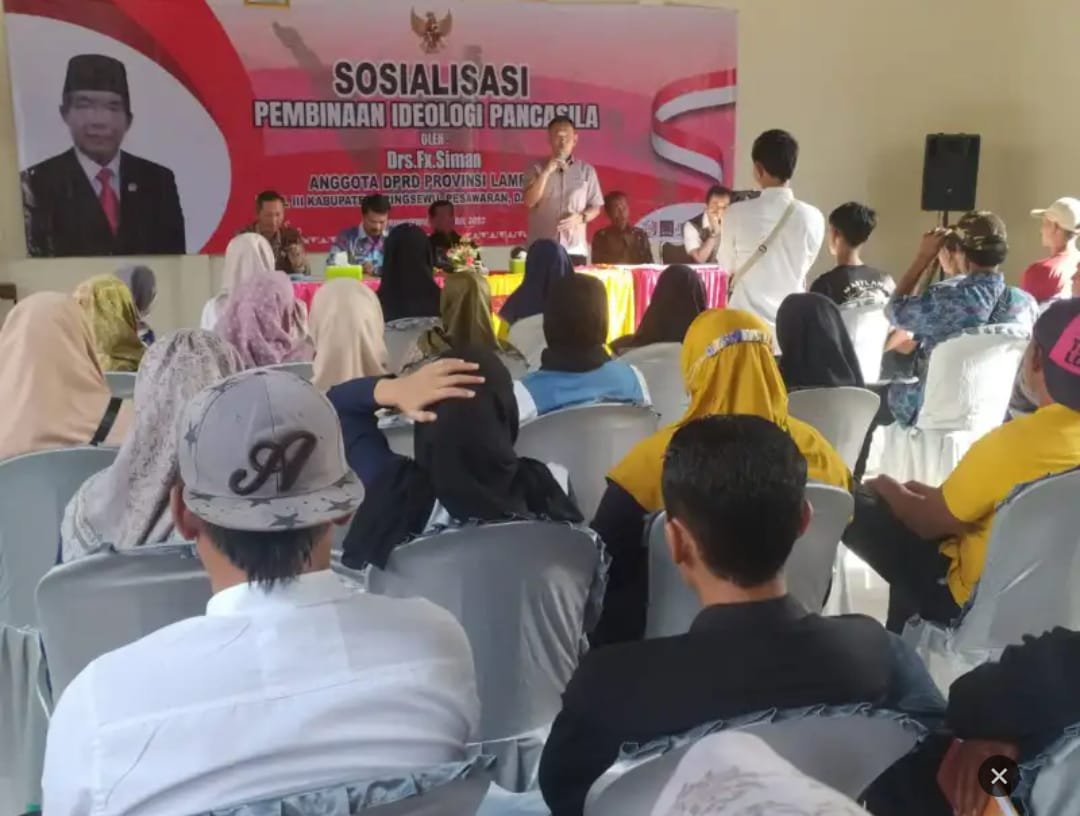 “Pancasila adalah landasan dan panduan kita dalam kehidupan berbangsa dan bernegara. Pendiri bangsa merumuskan Pancasila dengan tujuan agar bangsa yang kaya akan keberagaman adat dan budaya ini tetap bisa bersatu dan menjadi bangsa yang kuat,” kata FX. Siman saat berbicara di hadapan masyarakat Pekon Fajar Agung, Kecamatan Pringsewu, Kabupaten Pringsewu pada Jumat (14/04).