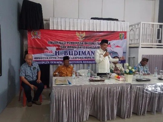 Hal ini disampaikan Anggota DPRD Provinsi Lampung Budiman AS saat melangsungkan giat Sosialisasi Pembinaan Ideologi Pancasila dan Wawasan Kebangsaan di Sumberejo, Kemiling, Bandarlampung (18/6).