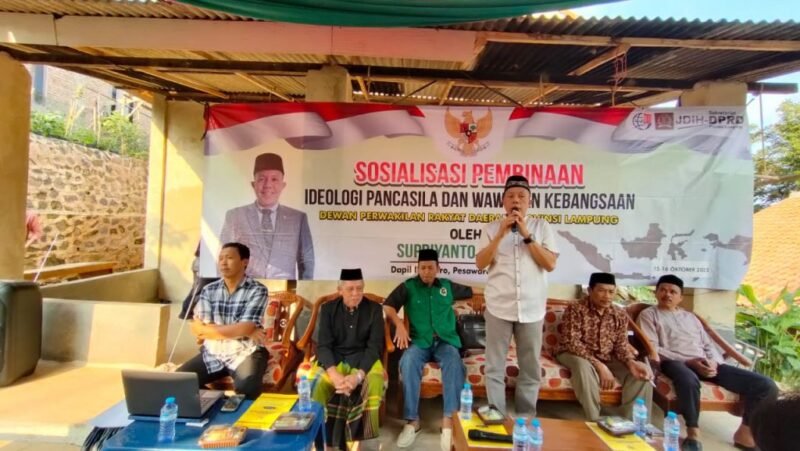 Pesawaran (Netizenku.com): Sosialisasi Pembinaan Ideologi Pancasila dan Wawasan Kebangsaan di gelar oleh Supriyanto anggota DPRD Provinsi Lampung. Minggu (16/10) di Desa Tanjung Agung, Kecamatan Teluk Pandan, Kabupaten Pesawaran.