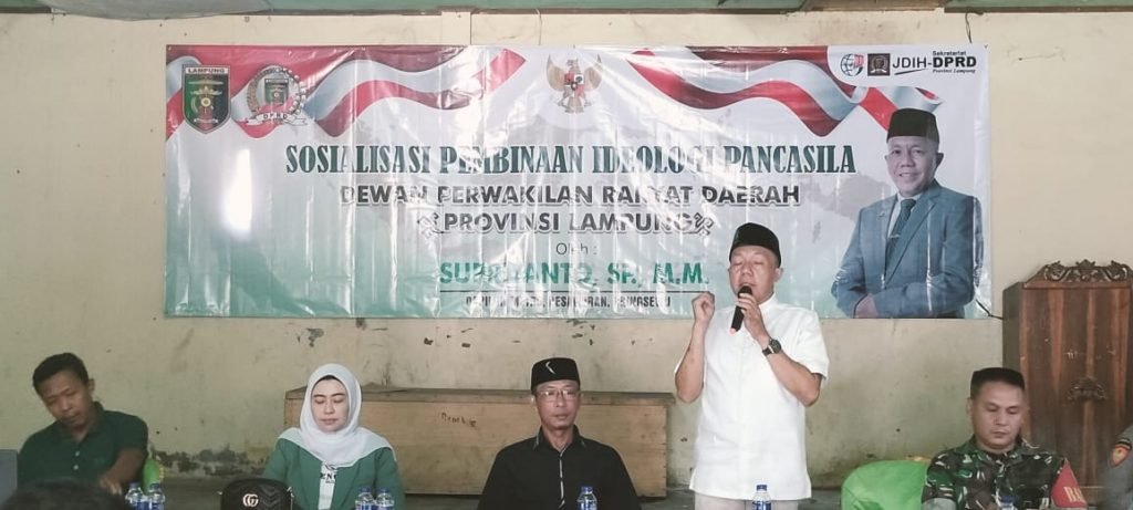 Bandarlampung (Netizenku.com): Supriyanto, anggota Dewan Perwakilan Rakyat Daerah (DPRD) Provinsi Lampung, menggelar kegiatan sosialisasi Pembinaan Ideologi Pancasila di Pekon Blitarejo, Kecamatan Gading Rejo, Kabupaten Pringsewu, pada hari Minggu, 9 Juli 2023. Dalam upaya untuk meningkatkan pemahaman dan komitmen masyarakat terhadap nilai-nilai Pancasila sebagai Ideologi Bangsa Indonesia, Supriyanto menggandeng dua narasumber, yakni Sutopo S.E. dan Ady Surya Irawan S.Pd.