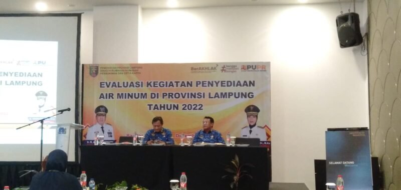Bandarlampung (Netizenku.com): Asisten Perekonomian dan Pembangunan Provinsi Lampung, Kusnardi, menghadiri evaluasi kegiatan penyediaan air minum di Provinsi Lampung tahun 2022 di Hotel Novotel Bandarlampung, Senin (19/12).