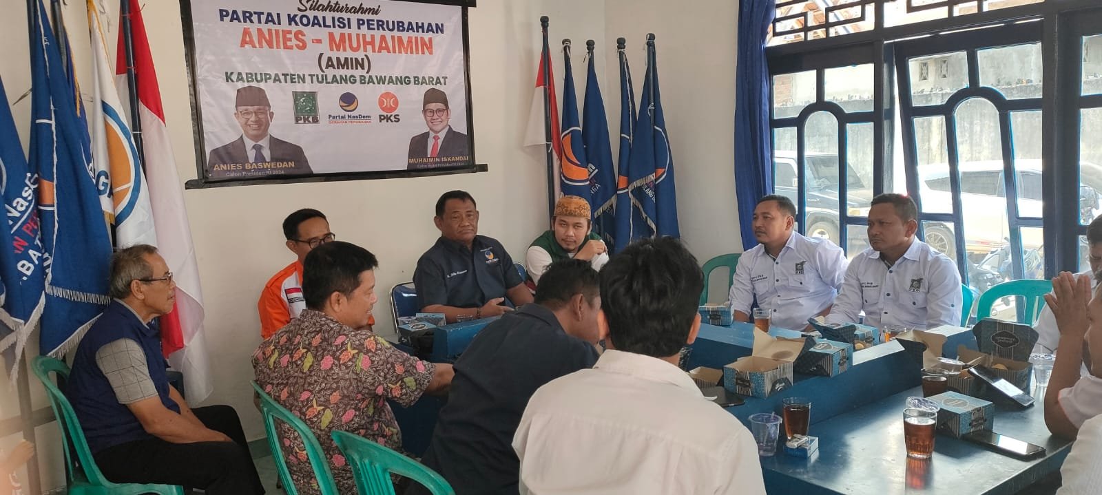 Tulangbawang Barat (Netizenku.com): Sebanyak tiga Parpol Koalisi pengusung pasangan Bakal Calon Presiden dan Wakil Presiden Anies Baswedan-Muhaimin Iskandar di Kabupaten Tulangbawang Barat (Tubaba), jalin silaturahmi menyolidkan kerja bersama dalam pemenangan Pilpres pada 14 Februari 2024 mendatang.