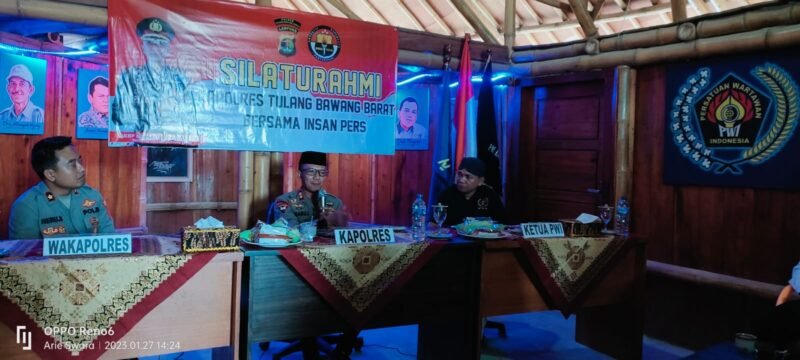 Tulangbawang Barat (Netizenku.com): Kapolres Tulang Bawang Barat (Tubaba) Polda Lampung AKBP Ndaru Istimawan, S.IK menggelar silaturahmi bersama insan pers di wilayahnya yang dipusatkan di Balai Wartawan Prof. Bagir Manan Kantor PWI Tubaba, Jum’at (27/1/2023).