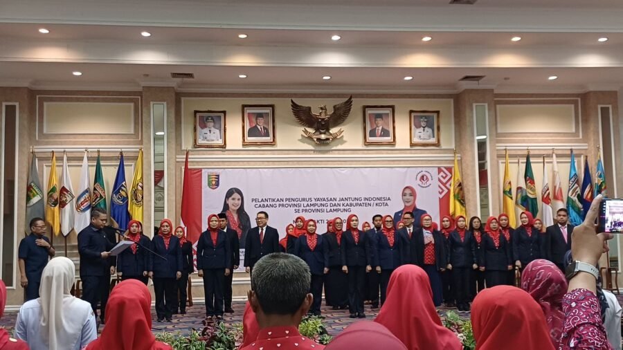 Wakil Gubernur Lampung, Jihan Nurlela melantik Pengurus Yayasan Jantung Indonesia (YJI) Cabang Provinsi Lampung serta kabupaten/kota se-Lampung di Balai Keratun Lantai III, Kantor Pemerintah Provinsi Lampung, Rabu (26/11/2025).