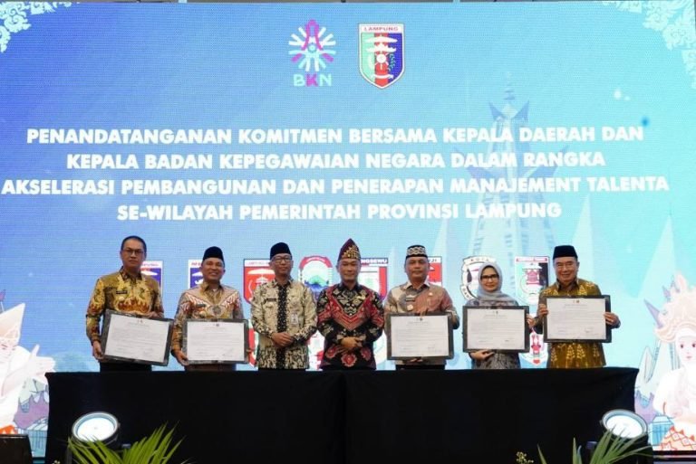 Lampung (Netizenku.com): Komitmen tersebut ditandai dengan penandatanganan Komitmen Pejabat Pembina Kepegawaian (PPK) oleh Gubernur Lampung Rahmat Mirzani Djausal, Kepala Badan Kepegawaian Negara (BKN) Zudan Arif Fakrulloh, serta seluruh kepala daerah kabupaten/kota se-Provinsi Lampung dalam kegiatan Penguatan Implementasi Manajemen Talenta ASN pada Pemerintah Daerah se-Provinsi Lampung di Ruang Sapphire, Hotel Grand Mercure Lampung, Kamis (06/11/2025).
